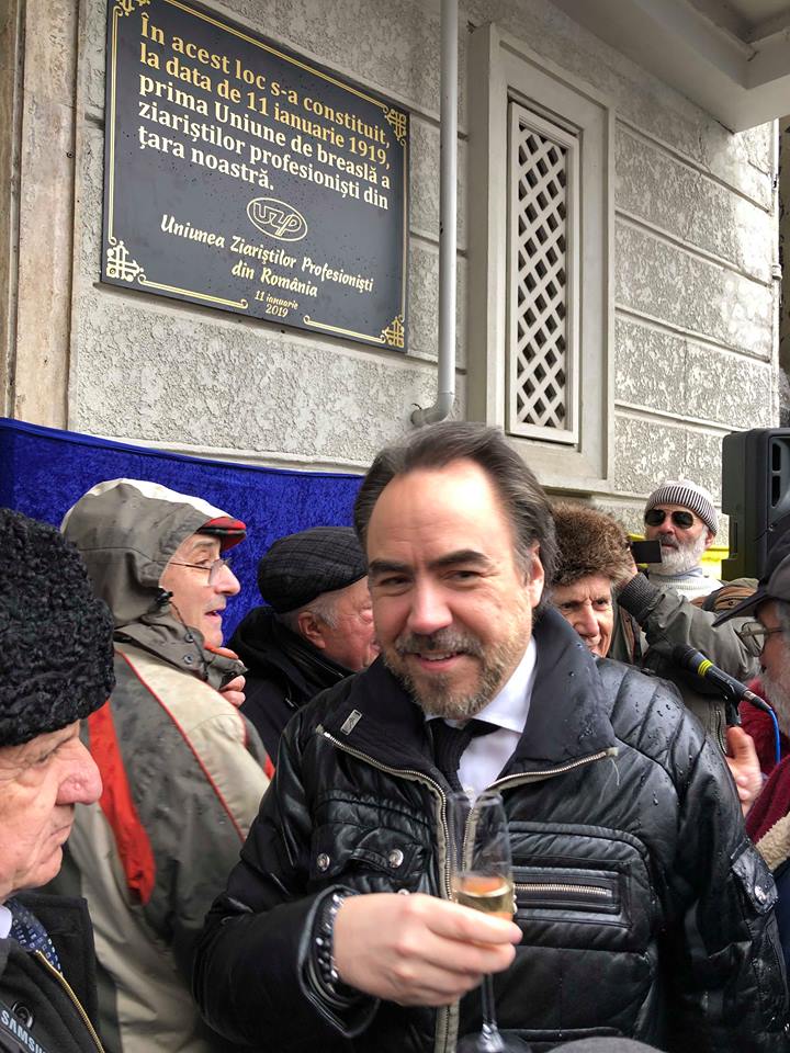 Moment emotionant pentru jurnalistii din intreaga tara! O placa omagiala a fost dezvelita vineri dimineta, pe 11 ianuarie 2019, pe clădirea care a găzduit, în urmă cu 100 de ani, înființarea primei organizații a ziariștilor profesioniști din România reîntregită. La manifestare au participat numerosi oameni de presa.