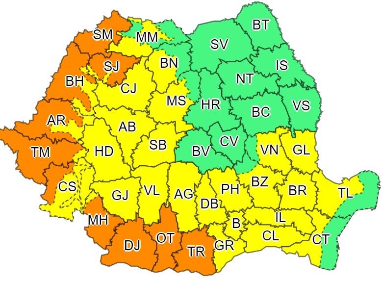 ANM a emis azi mai multe avertizări cod galben și portocaliu care se întind până în cursul zilei de luni, cu mențiunea că de marți lucrurile vor sta și mai rău.
