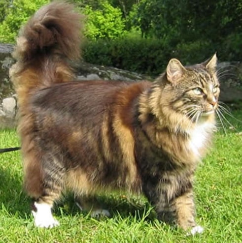 Coada acestor pisici este lungă şi stufoasă, blana este semilunga aşezată în două straturi, un sub-strat abundent acoperit de cel de al doilea strat de păr lung si lucios.