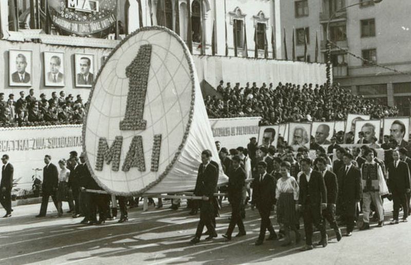 Pe stadioane, pe străzi și în parcuri, muncitori, țărani, intelectuali sau elevi, toți erau scoși din case în numele partidului unic și a lui Nicolae Ceaușescu pentru a sărbători, în sincron, Ziua Internațională de Muncii. Defilările propagandistice erau dublate de emisiuni speciale la televiziunea publică, unde imaginile și cântecele patriotice serveau aceleași scopuri: premărirea partidului și a conducătorului preaiubit.