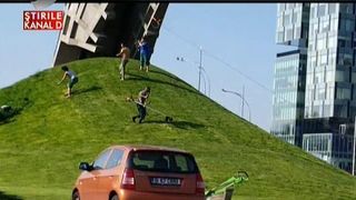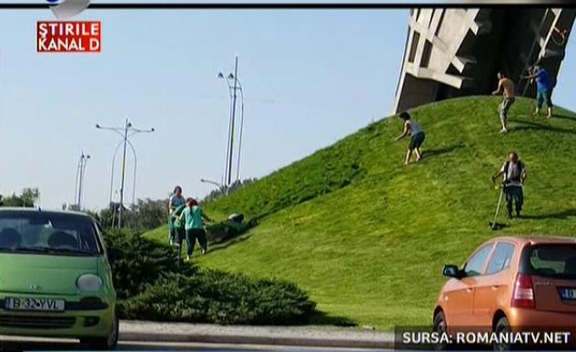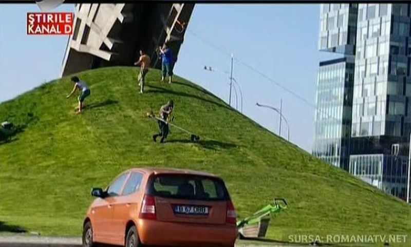 Nu stim cat o aminti de rezistenta anticomunista monumentul Aripi din fata Casei Presei, dar pe angajatii de la spatii verzi i-a pus la grea incercare. Nici nu va puteti imagina la ce solutii au fost nevoiti sa recurga pentru a taia gazonul de la baza monumentului! ##VIDEO9727##