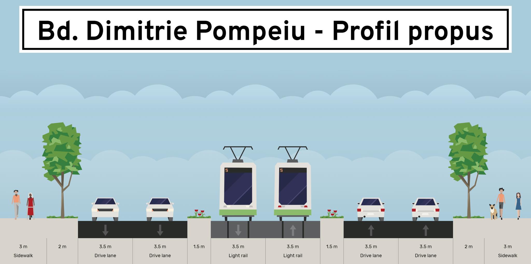 "Studiul de fezabilitate al acestui proiect a fost pus în licitație publică. Prin intermediul investiției se vor conecta liniile de tramvai 16 și 36 cu linia 5; se lărgește bulevardul Dimitrie Pompeiu la două benzi pe sens, având linie de tramvai, piste pentru biciclete și trotuare; un drum nou de legătură între șos. Pipera, bd. Dimitrie Pompeiu și șos. Fabria de Glucoză; dar și o parcare de tip Park & Ride", a precizat viceprimarul.